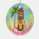 For Hawaii and cocktail lovers, here's a retro style tiki with a cocktail drink, palm trees and Hawaiian style flowers, personalized with your own text.