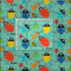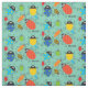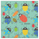 So Many Bugs fabric, cute, fun, colourful, features an aqua background with lots of bugs with googly eyes, stripes, and spots and black text that reads BUGS!