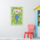 The pure pleasure of time alone to read and contemplate are captured by this illustration of the Reading Woman dressed in blue and pink holding a book, surrounded by letters of the alphabet in all the colours of the spectrum on a green background.