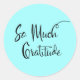 So Much Gratitude Modern Script Typography Aqua Classic Round Sticker