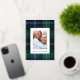 Send season greetings with this blue, white, and green plaid foil framed "Happy Holidays" photo greeting card. The "Happy Holidays" can be replaced with "Merry Christmas", "Season's Greetings" ,etc. The options for the foil are gold, silver, and rose gold.