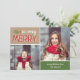 Affordable custom printed holiday photo cards with simple templates for customization. This modern design has a festive mix of typography in red, green and white on a faux kraft paper background. The wording says "So Very Merry". Personalize it with your photos and add your family name and the year. Reverse side has space for additional photos and text. Use the design tools to edit the text, add more photos and create a unique one of a kind Christmas photo card design.