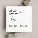 Tell your love story in style! Our personalized wedding napkins allow you to change “So We Met at a Bar” to any location, making them perfect for couples who met at a restaurant, park, workplace, or anywhere special. Add your names and date to create a unique wedding detail that guests will love! | Personalized wedding cocktail napkins | How we met Napkins