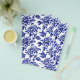 A floral soap wrapping sheet featuring blue dahlia flowers on a white background.