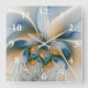 Soaring, Abstract Fantasy Fractal Art With Blue Square Wall Clock
