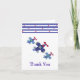 A fun design accents this thank you card. Three soaring airplanes in shades of blue with red propellors. A border of blue and white stripes with little red stars. Customize as desired.