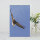 An adult bald eagle in a sharp turn highlighted by a blue sky.