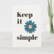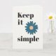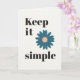 Cette carte de voeux pliée de 5" x 7" comporte des espaces réservés pour n'importe quel nom et un temps sobre. Deux champs pour nombre et longueur. Exemples : un, année; 30, jours; 6, mois. L'avant présente l'accueil, "Keep it Simple", en lettres noires simples avec une simple marguerite turquoise.