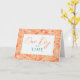 This 7” x 5" folded greeting card features placeholders for any name, and time sober. Two fields for number and length. Examples: one, year; 30, days; 6, months. The non-editable front features the greeting, "One day at a time," in turquoise and orange with an abstract orange floral background.