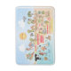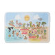 Bright and colourful scene offers a spectacular view of Southern California - wacky characters frolic on the beach and desert of SoCal showcasing Los Angeles, San Diego, Orange County, Santa Barbara, Riverside, Palm Springs, Anza Borrego and Joshua Tree parks as well as the border cities of Tijuana, Tecate and Mexicali. This charming scene has it all – a surfer hangs ten while a killer whale leaps out of the water, zoo animals greet the tourists, a muscular beach couple both flex to impress as a T-Rex roars a challenge and a tank moves into position and much more…