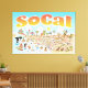 Bright and colourful scene offers a spectacular view of Southern California - wacky characters frolic on the beach and desert of SoCal showcasing Los Angeles, Long Beach, San Diego, Santa Barbara, Riverside, Palm Springs, Anaheim, Anza Borrego and Joshua Tree parks as well as the border cities of Tijuana, Tecate and Mexicali. This charming scene has it all – a surfer hangs ten while a mermaid lounges on a rock, a killer whale leaps out of the water, zoo animals greet the tourists, a muscular beach couple both flex to impress as a T-Rex roars a challenge and a tank moves into position and much more…