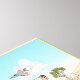 Southern California - wacky characters enjoy the warm SoCal sun showcasing Los Angeles, San Diego, Santa Barbara, Anaheim, Riverside, El Centro and Palm Springs with Anza Borrego and Joshua Tree parks as well as the border cities of Tijuana, Tecate and Mexicali. This charming scene has it all – a surfer hangs ten while a mermaid lounges on a rock, a killer whale leaps out of the water, zoo animals greet the tourists, a muscular beach couple both flex to impress as a T-Rex roars a challenge and a tank moves into position and much more…