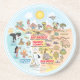 A cartoon of Southern California – showcasing Los Angeles, Orange County, and San Diego - cartoon characters of all sorts swim and splash and play beneath the bright California sun shining high above it all.