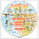 This bright and colourful scene offers a spectacular view of Southern California - wacky characters frolic on the beach and desert of SoCal showcasing Los Angeles, Orange County, San Diego, Santa Barbara, Palm Springs, El Centro, Beverly Hills, Laguna Beach, La Jolla, Anza Borrego, and Joshua Tree parks as well as the border cities of Tijuana, Tecate, and Mexicali. This charming scene has it all – a surfer hangs ten while a killer whale leaps out of the water, a hiker is noticed by a UFO, and much more…