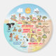 Bright and colourful scene offers a spectacular view of Southern California - wacky characters frolic on the beach and desert of SoCal showcasing Los Angeles, San Diego, Orange County, Santa Barbara, Riverside, Palm Springs, Anza Borrego and Joshua Tree parks as well as the border cities of Tijuana, Tecate and Mexicali. This charming scene has it all – a surfer hangs ten while a killer whale leaps out of the water, zoo animals greet the tourists, a muscular beach couple both flex to impress as a T-Rex roars a challenge and a tank moves into position and much more…