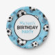 Soccer Ball and Goal Blue Personalized Paper Plate