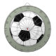 This design features an image of a soccer ball (also known as a football or association football ball), which is the ball used in the sport of association football. The black-and-white patterned spherical icosahedron design has become a symbol of the sport. Association football is currently the world's most popular sport. The game is played on a rectangular field called a pitch with a goal at each end; there are two teams of 11 players.