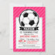 Soccer Ball on Neon Pink Stripes Invitation