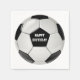 Soccer sports themed paper napkins, with graphics of a black and white soccer ball. Personalize the white text to read anything you want. Matching party paper plates, candy tin favours, and invitations are available.