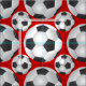 This sports themed design features a pattern of graphic illustrations of a soccer ball also known internationally as a football.