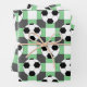 Soccer Ball Plaid Pattern In Black White and Green Wrapping Paper Sheet