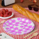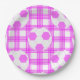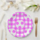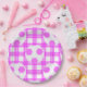 Soccer Ball Plaid Pattern In White and Pink Paper Plate