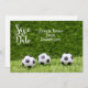 Invite your friends and family to save the date for your upcoming soccer game with this invitation that features a soccer ball and the words "save the date."