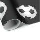 Wrapping paper shown with a sports soccer ball print on a black background. Customize this item or buy as is.