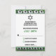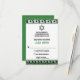 This soccer-themed Bar Mitzvah RSVP card coordinates with the Soccer Balls on Grass Bar Mitzvah invitation. It has a band of green grass along the top and bottom with a series of black and white soccer balls across the width of the card. This soccer reply card has a mix of green and black lettering in fonts that match the invitation and the backside is green with a karger black and white soccer ball with the Bar Mitzvah's initials printed on in green.