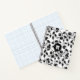 This soccer themed spiral notebook for boys or girls features a pattern of varied size black and white soccer balls turned every which way - customize with soccer player's name and monogram or jersey number - by katz_d_zynes
