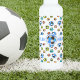 This stainless steel water bottle is perfect for the soccer field! Designed with a colourful repeating pattern of graphic soccer balls, this sports bottle features customizable text area to add a player or team name! Never lose or confuse your bottle again by adding your child's name! A cute design for boys or girls soccer available in multiple colorways. Play hard and stay hydrated!