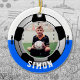 Celebrate your child's athletic triumphs in youth league, college or high school soccer with this Soccer Blue White Team Colours Ornament. Personalize with your child's photo, name and the year. A great gift idea for Grandma and Grandpa.