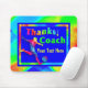 Bright red, yellow, blue and green lights, stars and soccer player silhouettes give a colourful glow to this thank you soccer coach mouse pad design. Personalize text in template provided. A meaningful thank you gift for a special soccer coach. You may also enjoy matching cards and gifts available in my store. Original design by Anura Design Studio 2011.