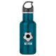 Great looking aluminum water bottle, with graphics of black and white soccer balls, in the middle. Custom what text, on the front, is ready to personalize for yourself or for your favourite soccer fan or player. Select the size and colour bottle you prefer.