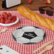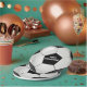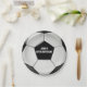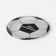 Soccer sports themed paper plates, with graphics of a black and white soccer ball as the background. Personalize the white text for your special sports themed event, matching paper napkins and invitations are available.