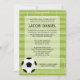 A unique soccer themed Bar Mitzvah invitation featuring a soccer ball on a field illustration.