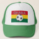 The flag of Ghana, red, yellow and green stripes. The star has been replaced by a football, soccer ball. The ball and the word Ghana are drawn in a scribbled style, with a white background.