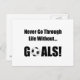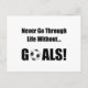 Players, coaches, teams and fans of soccer and putball joke you should never go thorugh life without goals. Check out this funny custom design on tees, shirts, mugs, pyjamas, gifts and other apparel.