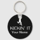 Soccer / futbol / football Kickin It Keychain with customizable name with a soccer player silhouette