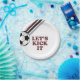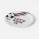 Soccer Maroon Stripes Let's Kick It Birthday Paper Plate