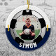 Celebrate your child's athletic triumphs in youth league, college or high school soccer with this Soccer Navy White Team Colours Ornament. Personalize with your child's photo, name and the year. A great gift idea for Grandma and Grandpa.