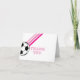 Let's Kick It! Soccer Birthday thank you cards with pink stripes and soccer ball.