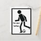 Soccer player and ball vertical postcard displaying a black silhouette of a soccer player ready to kick his ball and your text on white background with black border. The perfect gift for the soccer –European football- player or soccer lover in your life. Some elements courtesy of vectorportal.com.