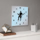 Soccer Player Black Numbers Square Wall Clock