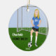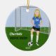 Celebrate the latest and best soccer player with this keepsake ornament. Customize to fit your athlete's information. The name, team and player details are included as a template or delete the text if not needed. This design does not go well on the smaller ornaments; the details will not show up and the font will look too small. If help is needed with personalizing please contact the designer. Background and text colours can be changed if desired. Requests for specific colours, uniform styles, skin tones or hair colour are welcome if you contact the designer - Night Owl's Menagerie, original: 2019.