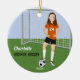 Soccer Player Brunette In Orange Ceramic Ornament