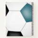 This cool soccer themed spiral notebook features the image of a simple, abstractly oversized soccer ball with teal, black and white panels on the front and back cover - athlete's name and varsity letter, monogram or jersey number are customizable - by katz_d_zynes