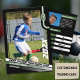 Introducing our Classic Soccer Trading Card – a timeless tribute to the world's most beloved sport, set against a backdrop of bold black with sleek green and white stripes.