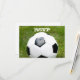A soccer ball on green grass is featured on this sports themed RSVP card.