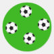 Simple design of black and white soccer balls set against a green pitch background. Image available on various gifts and products.
